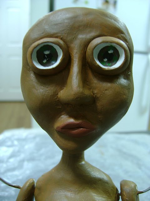 Here she is painted. Ran into a problem with the paint feeling sticky after a week or so. After some research I found that certain paint and clay combinations get sticky from the way they react to each other and never dry. My way around this was to put clear nail polish on top of the doll’s coat of paint.