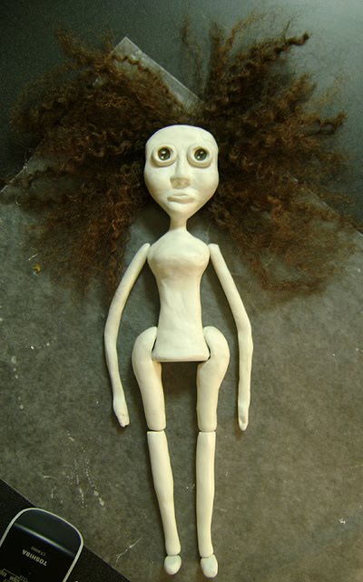I completed the limbs for the rest of the body. I just stuck that hair behind her head to see if I wanted to use it.