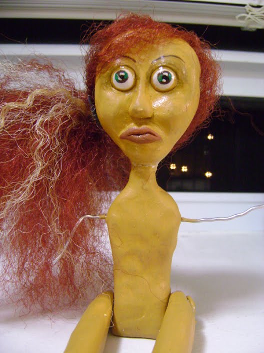 I figured I’d add red hair to compensate for the way the eyes came out. In the middle of the process I realized that the clay that I used for this one was very brittle and broke easily. I had to now search for a new brand of clay. Not fun at all especially when I’m in the midst of a creative spurt.