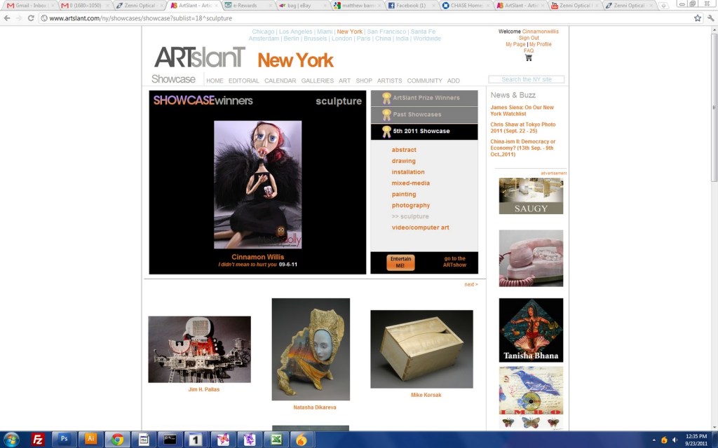 My doll “Boo” AKA “I didn’t mean to hurt you” has made her way into an online sculpture showcase on Artslant! You can check her out here http://www.artslant.com/ny/showcases/showcase?sublist=18^sculpture