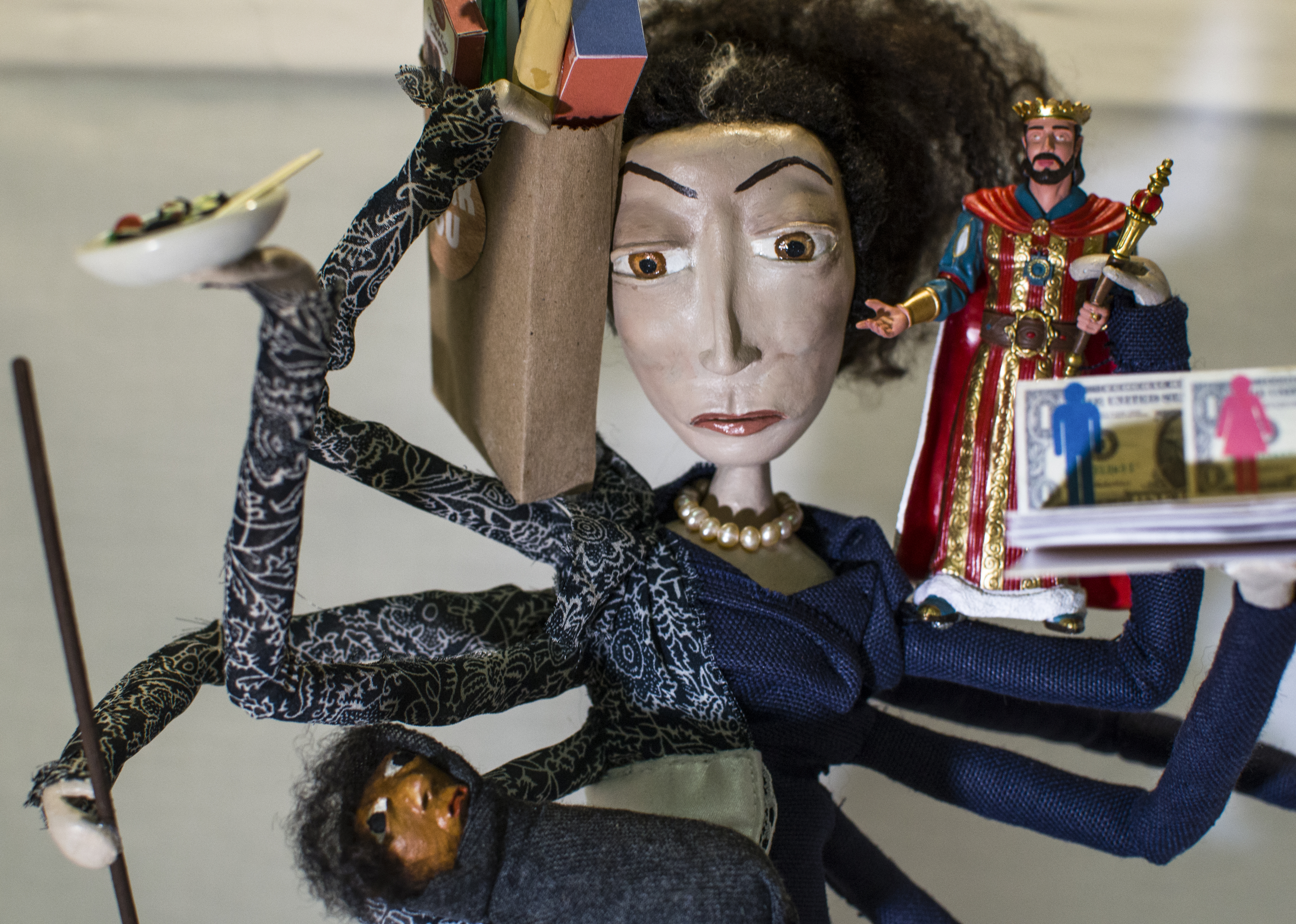 This piece accurately portrays the workload of a modern woman. The missing shoe is a great detail. :^)